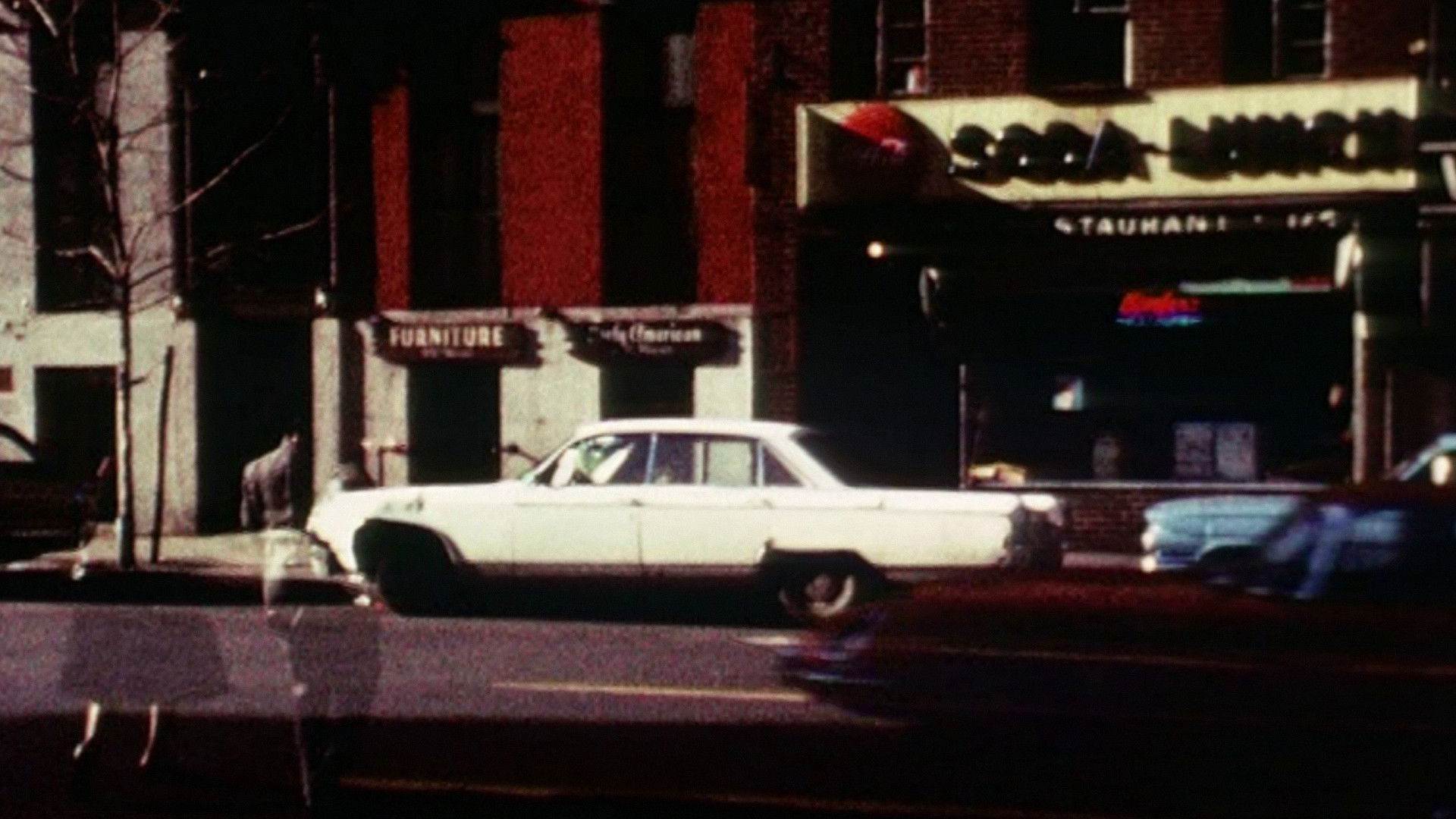 "This collapse of separate times into one image creates another push/pull with the experience of depth. The superimpositions seem to lie on top of the image, yet they move into depth, creating what Gehr describes as a 'teasing play with planes.' But the play with space and position here involves more than tension between layers. The variations on light and shadow on the two levels cause the double-exposures to pop in and out of depth. A shadow on the first level can give the superimposition a sudden burst of solidity. Gehr calls our attention to the multiplicity of depth cues that operate in a film in addition to perspective recession. The cue of overlap creates much of the amusement of the film, as the vehicles on one level plow through the phantoms on the other. Gehr was particularly fascinated by the way depth cues provided by color (with warm colors coming forward) interact with the logic of space..." – Tom Gunning